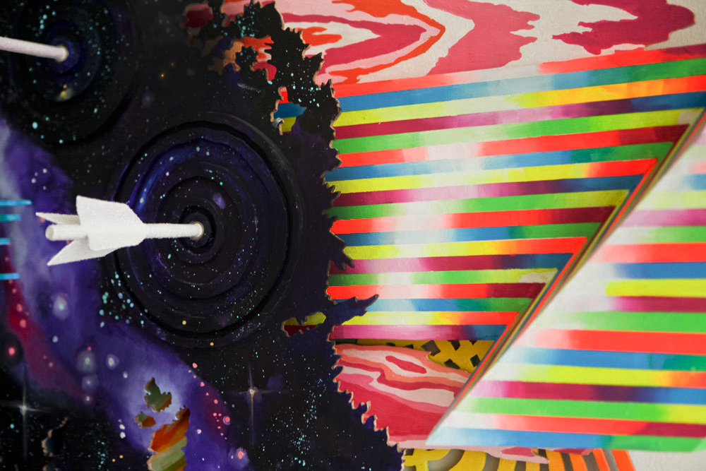 wood, oil paint, acrylic paint, acrylic sheet, styrene sheet, glitter